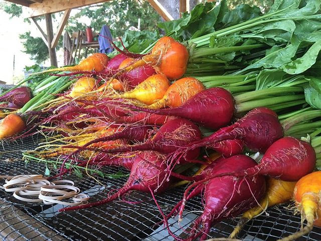 Three Root Grex Beet: Bred by Alan Kapuler of Peace Seeds in the 1980’s and derived from hybridizing three distinct beet varieties: Crosby Egyptian, Detroit Dark Red and Lutz Saladleaf.